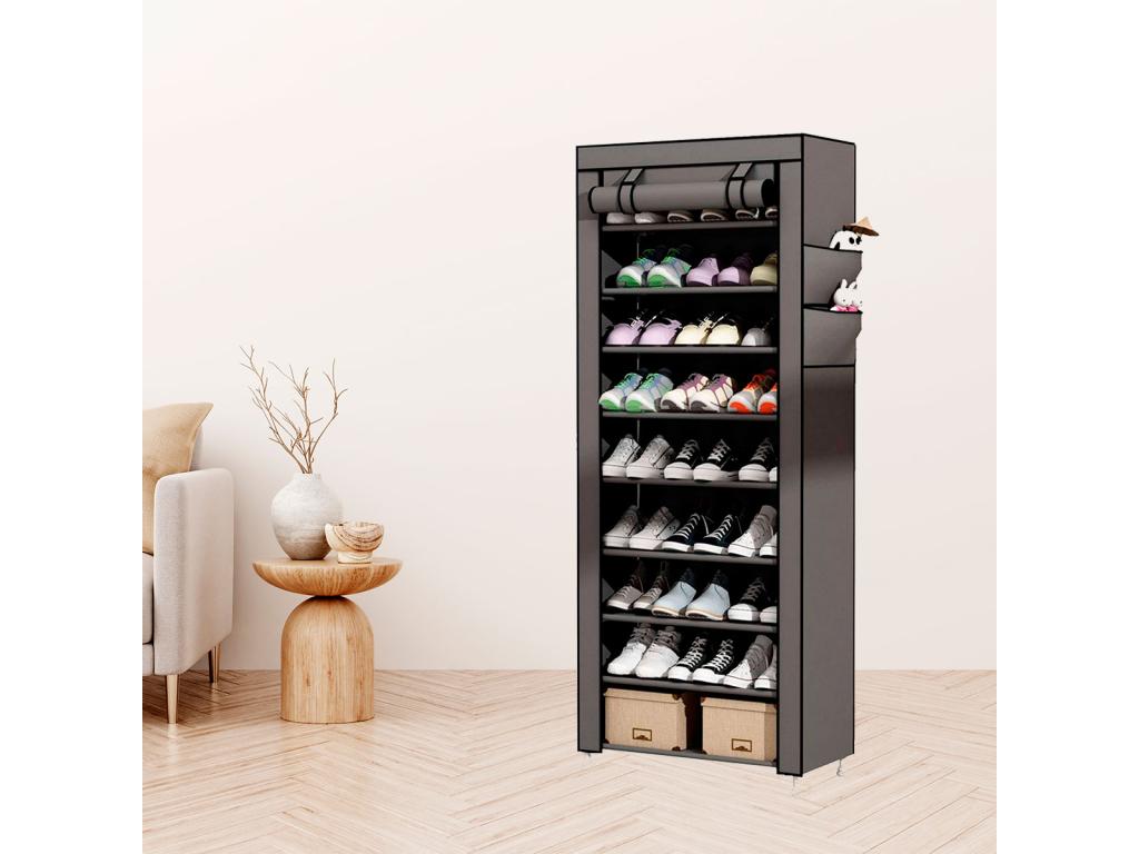 ¡Descubre el zapatero de tela definitivo para mantener tus zapatos organizados! Con 10 amplias baldas, este zapatero te ofrece un espacio de almacenamiento generoso para todos tus pares de zapatos favoritos. Su diseño de tela no tejida resistente y transpirable protege tus zapatos del polvo y la humedad, manteniéndolos en perfectas condiciones. Además, su estructura ligera y portátil te permite colocarlo en cualquier lugar de tu hogar, ya sea en el dormitorio, el vestidor o el pasillo. ¡Di adiós al desorden y dale a tus zapatos el hogar que se merecen con este zapatero de tela de 10 baldas! Descripción: Tipo de material: tela no tejida, tubo de acero y conector de polipropileno. Color: Marrón, Gris, Negro, Beige. Tamaño: 160 x 88 x 30 cm . Material ligero. Almacenamiento:27 pares. Tubos de alta calidad, lisa y con fuerte resistencia a la corrosión. Puerta con cremallera y velcro para proteger tus zapatos del polvo.Caracteristicas