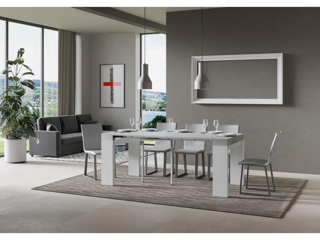 Consola extensible gris cemento y blanco 40 a 196 cm Ribo-Soporte 4 pies