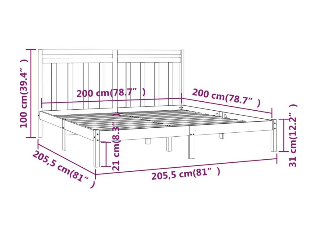 Casavivaes le ofrece : esta estructura de cama clásica, con un diseño sencillo pero atemporal, está pensada para ser un complemento práctico y decorativo en tu dormitorio. Madera de pino maciza: La madera de pino maciza es un bonito material natural. La madera de pino tiene vetas rectas, y los nudos dan al material su distintivo aspecto rústico.Listones robustos: Los listones de madera contrachapada proporcionan una buena distribución del peso, lo que garantiza que el colchón se mantenga en tu sitio con cada giro y vuelta del cuerpo mientras duermes.experiencia confortable: Combina esta estructura de cama de madera y el cabecero para disfrutar al máximo de tus noches. Ya sea recostándote en el cabecero para leer o simplemente teniendo un dulce sueño, esta cama de madera seguro que satisface tus necesidades. Nota:el colchón no está incluido. Puedes echar un vistazo a nuestra tienda para buscar el correspondiente colchón.esta estructura de cama es adecuada para un colchón de 200 x 200 cm